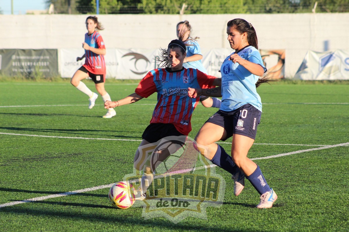 Los primeros quince minutos del juego, se disputaron en el campo de Junín. Las visitantes dejaron sólo a una jugadora en ataque, tratando de privilegiar mantener el cero en su arco. Pero una jugada en ataque de Olavarría sobre la izquierda comandada por Karen Bargas que se escapó en velocidad, provocó un tiro libre a favor del equipo de Claudio Pinedo.