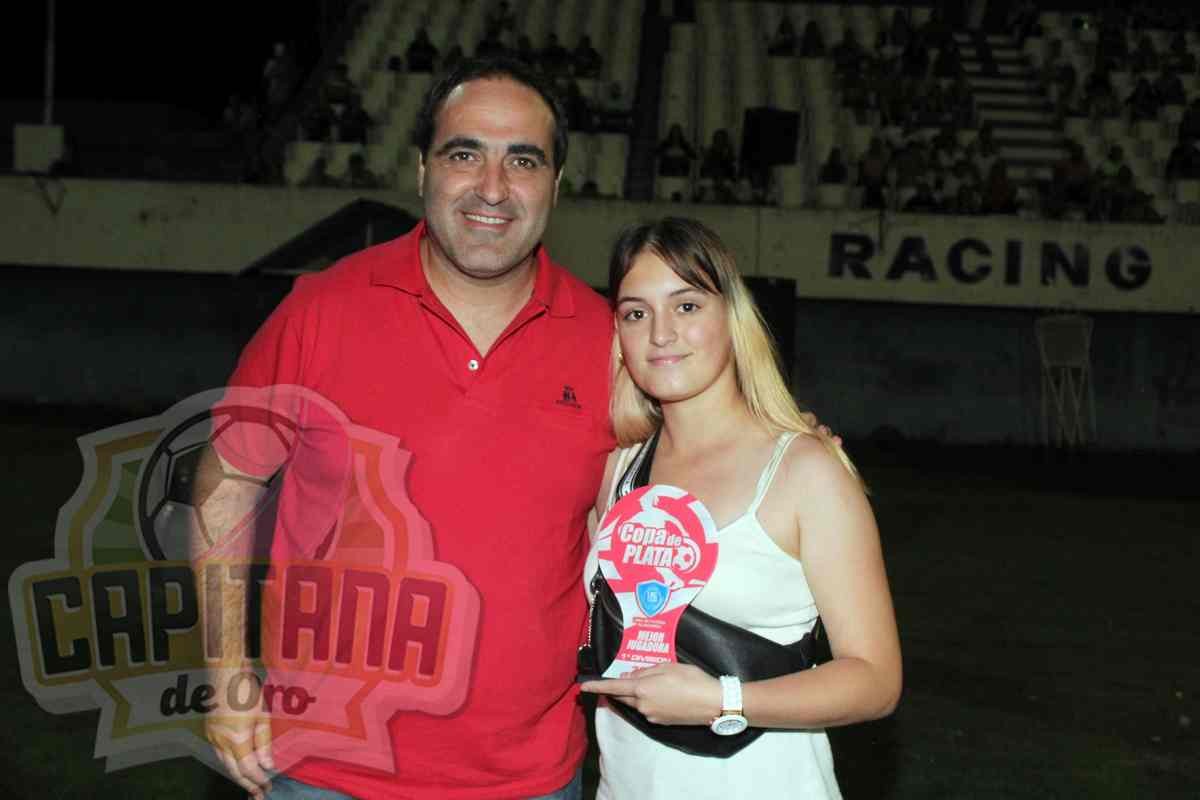 Por Racing Azul recibió el reconocimiento como jugadora destacada, Martina Coliman. Entregó la distinción Débora Lebrero.